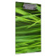 This design features a super close-up photo of green grass, giving an excellent view of the individual blades that are splashed with droplets of dew.