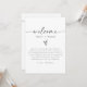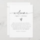 This wedding welcome letter and timeline features a minimalist bohemian design with edgy handwritten fonts. The simple black and white colour combination makes it the perfect addition to any event. Easily edit *most* wording on this timeline. Click 'click to customize further' in the personalization section to open up the full editor. To add new icons, visit https://www.svgrepo.com/ and search the icon you need. Download as a .svg and then drag and drop it into the Zazzle editor. Change the colour of the icon on the right-hand side of the editor.
