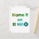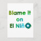 Got problems? Need a scapegoat? Blame El Nino! When Mother Nature attacks with tornados, hurricanes, drought, and winter storms, meteorologists look to the Pacific ocean and blame El Nino - why can't you? Great tongue-in-cheek eco design for Earth Day, climate change, girlfriend/boyfriend problems, and for that special weatherman in your life.