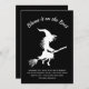 A spooky witch flying on a broomstick and the fun saying, Blame it on the Boos, accents this Halloween Costume Party Invitation on a black background, making this invitation perfect for the Adult Halloween Party.