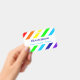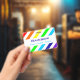 Un arc-en-ciel et des bandes blanches motif avec espace pour un nom et des pronoms personnalisés.