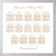 Une élégante affiche de chaises avec du texte élégant dans une teinte dorée de beige sur le blanc classique traditionnel. Veuillez personnaliser le nom du couple et le nom des invités ainsi que tout autre texte que vous souhaiteriez personnaliser.