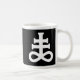 Appréciez votre boisson de choix avec le double blanc classique sur la tasse blanche ornée par symbole noir de soufre. Le symbole de soufre a été employé par Anton Szandor LaVey au dessus des 9 déclarations sataniques dans la bible satanique.