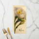 Customisez le joli menu de mariage blanc double jonquilles du printemps avec les détails du repas que vous pourrez servir à votre repas de mars, avril ou mai printemps mariage réception dîner ou jardin fête nuptiale déjeuner ou brunch post mariage en ajoutant la salade ou premier plat, entrée ou deuxième plat et dessert ou troisième plat. Personnalisez-le avec les noms de la mariée et du marié, l'emplacement du lieu et la date de l'événement. Cet élégant menu à fleurs personnalisé mariage présente une photographie florale numériquement peinte de fleurs blanches à double jonquille sur la tige avec un arrière - plan de couleur crème blanche cassée.