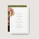 Moderne et tendance avec une atmosphère vintage. Cette belle faire-part de mariage présente un bouquet d'accents roses voluptueux contre des arrière - plans chics blancs et verts d'olivier. L'ensemble de polices contemporaines dégage une élégance moderne et élégante. Personnalisez avec le site Web mariage et les détails RSVP à l'arrière.