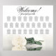 Améliorez la beauté et le raffinement de votre réception de mariage avec ce tableau captivant de 25 places, pouvant accueillir jusqu'à 250 personnes avec 10 places par table. Le somptueux design floral moderne présente un rose unique couleur ivoire, blanc ou crème, reposant élégamment sur son côté, se reflétant dans l'eau. L'élégant titre de calligraphie de script dit "Bienvenue! Veuillez trouver votre table", tandis que la partie inférieure offre de l'espace pour les noms du couple et la date du mariage, ajoutant une touche personnelle à votre décor. Ce tableau de sièges dégage une atmosphère intemporelle, classique, sophistiquée et glamour, accueillant vos invités à votre réception et les guidant à leur siège avec facilité. C'est la façon idéale d'élever le style et l'élégance de votre réception de mariage tout en assurant à vos invités une expérience mémorable.