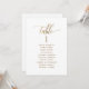 Aidez vos invités à trouver leur table avec cette élégante carte moderne de plan de salon avec les noms des invités. Cartes recto-verso pour que les clients puissent chercher leur nom à l'avant ou à l'arrière. Libérez de l'espace tout autour en vous donnant la liberté d'utiliser des clips ou un trou de poinçonnage pour accrocher des affichages, ou d'utiliser le support de table. Arrière - plan blanc et texte en or. Détails de calligraphie manuscrite moderne. Une partie de notre collection "Elegant Calligraphy Mariage Stationery". Visitez la collection entière à l'adresse suivante : https://www.zazzle.com/collections/elegant_calligraphy_minimalist_wedding_stationery-119497981924462546