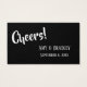 Voulez-vous offrir à vos invités un moyen de profiter de plusieurs boissons alcoolisées pendant votre réception ou votre fête sans vous engager dans un open bar ? Ces billets à 3 punch pourraient être idéaux pour vous ! Dans une police de caractères moderne blanche en gras, le message sur le devant dit : "Prenez un verre sur nous !". Le texte est modifiable, si vous souhaitez un autre message. Rotation, à droite et placé entre des lignes minces sont les mots "Rééchanger à la barre"; ce texte est également modifiable. Trois cercles numérotés ont été ajoutés à droite pour que vos invités puissent se faire perforer leur carte au bar, qui peut servir jusqu'à trois boissons complémentaires. Sous le mot "Cheers !", l'autre côté a des champs modèles configurés pour vos noms et votre date. Il suffit d'utiliser des champs modèles pour ajouter vos informations personnelles et reformuler n'importe quelle phrase. Tous les calques ont été ajoutés sur un noir solide modifiable; changez cette couleur à tout ce que vous voulez, pour correspondre à votre palette de mariages. Conçu par Melody Watson pour Paper Muserie.