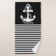 La serviette élégante de bain décorative présente des rayures noires et blanches nautiques avec une illustration du vecteur d'ancrage blanc sur un arrière - plan noir que vous pouvez facilement changer de couleur. Objets correspondants disponibles dans notre magasin.