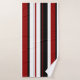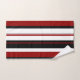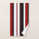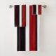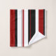 Ces serviettes sont équipées d'un motif à rayures verticales en noir, rouge et blanc.