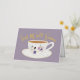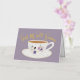 This "Get Well Soon" greeting card is blank inside for a personal message to be added. The front of the card features a floral print teacup, lined saucer, and text in real foil. The foil options are gold or silver.