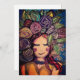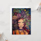 whimsical depiction shows a smiling person adorned with a vibrant crown of flowers and leaves. The background features swirling patterns that add to the lively and cheerful atmosphere