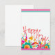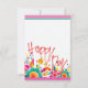 Whimsical art. Bright cheerful "Happy Day" note card, thank you note. Room on both back and front for note. Pink, aqua, sunny yellow modern floral.