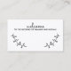 This place card features black hand drawn rustic laurels with word 'welcome' in modern script font style on kraft paper card.