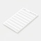 A very clever solution for jotting down (musical) notes on the go — or writing assignments as student and/or teacher — is this pad of sticky notes imprinted with nine blank staves on each page. At the top, looking like the title of a piece and its composer, are displayed the words "Notes from" and a placeholder name. This all can be easily edited to any text desired or deleted in part or in full, according to preference.
