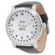 Blank Template (Binary Face) Men's Vintage Black Leather Strap Watch.
