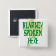 This funny St. Patrick's Day design features the caption "Blarney Spoken Here" on a green shamrock background.