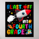 Blast Off Into 4th Grade Rocket Outer Space Back T Poster