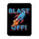 Our Blast Off design is a great design for kids of all ages who love space and rocket ships, features a blue and red rocket ship with flaming exhaust and text that reads Blast Off! Blast Off rocket ship T-shirts, bibs, blankets, cards, stickers, mugs, bags, pillows, wall clocks, and much more!