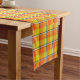 Blaze Orange and Bird Flower Plaid Short Table Runner
