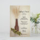 Customisez le charmant Menu Mariage de brasserie Blé et houblon avec les détails du repas que vous pourrez servir à votre déjeuner de douche à thème de bière, brunch post-mariage ou dîner de réception en ajoutant la salade ou le premier plat, entrée ou deuxième plat et dessert ou troisième plat. Personnalisez-le avec les noms de la mariée et du marié, du lieu de l'événement et de la date. Ce menu de mariage rustique personnalisé comprend une photo d'une bouteille en verre brun, une vigne à houblon séchée blanche, séchée verte et un voile de mariée blanche. Idéal pour le couple qui servira des bières artisanales ou des micro-brasseries lors de leur rassemblement.