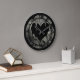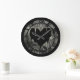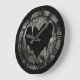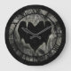 This gothic clock has a design of a heart and skulls in a black and grey colour scheme.