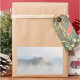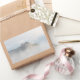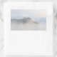 Rectangular photo sticker of historic Bled castle, built upon the rocks along Lake Bled, surrounded by clouds and ground fog, like it is a castle built in the sky, in Bled, Slovenia.