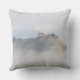 Photo throw pillow cushion with historic Bled castle, built upon the rocks along Lake Bled, surrounded by clouds and ground fog, like it is a castle built in the sky, in Bled, Slovenia.