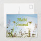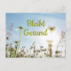 Bleibt Gesund mit bunter Blumen Wiese und blauem Himmel, mit strahlender Sonne