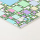 One side of this yoga mat features a splash of colour featuring a geometric multicolored pastel mini box design. Click customize to add text in a typeface style, colour, and size you like.