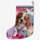 Christmas dog stocking with Blenheim Cavalier king charles spaniel art design. floral. Holiday stocking.