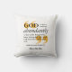 This is a Christian BLESS ABUNDANTLY positive affirmation Throw Pillow, where I have taken a popular Bible verse to make a positive declaration. The text is based on 2 Corinthians 9:8 and starts with 'GOD IS ABLE TO BLESS ME ABUNDANTLY'. The design shows black script typography with bold golden yellow curly speech marks against a white background, and is repeated on the back. At the bottom, there is a placeholder name. This text is CUSTOMIZABLE so you can add your name. An ideal gift for birthdays, Christmas, or to encourage someone that God will abundantly bless them. Choose from a wide selection of POSITIVE CHRISTIAN AFFIRMATION gifts, designed by Berean Designs.