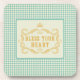 Stylish coaster set with a touch of Southern charm, featuring gold "bless your heart" text in fancy frame and vintage blue gingham background.