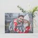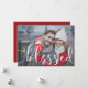 Carte photo de vacances moderne et fantaisiste avec typographie lettrée à la main et arrière - plan de neige rouge et blanc. Il fait partie d'une collection de vacances, "Blessed Whimsical Script". Des éléments correspondants et d'autres couleurs sont disponibles. Joyeuses fêtes !