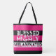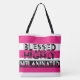 BLESSED and HIGHLY MELANINATED Tote - Cutout Text in Pink, black and white