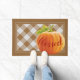 Blessed Autumn Harvest Pumpkin On Gingham Welcome Doormat