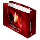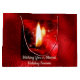 The reflected flame of a single red candle glows brightly on the front of this design, covered in a look of textured foil in a deep, deep red. "Wishing You A Blessed Holiday Season" is in a pale gold script font on the picture, front and back. The red candle, its flame and reflected flame and star-filled black and red muzzy background blend into a background of deep red foil.. The inscription, "Wishing You A Blessed Holiday Season" can be edited easily to anything you like. Just hit "Personalize" and get started. Or delete it entirely, if you prefer.