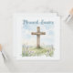 This watercolor Easter greeting card features a rustic wooden cross standing gently against a soft light blue sky with faint clouds and delicate purple wildflowers in the foreground. The hand-painted style gives it a peaceful, nostalgic feel, perfect for sharing faith-filled blessings during the Easter season. With the message “Blessed Easter,” this design is ideal for church communities, family members, friends, pastors, or anyone who appreciates a meaningful and elegant Christian aesthetic.