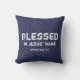 BLESSED IN JESUS' NAME Christian Scripture Blue Throw Pillow