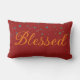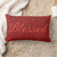 Inspirational Blessed Word Holidays Red Waist Lumbar Pillow. Inspirational Word Blessed Falling Snow graphic print Christmas Pillow. Made in the USA 100% cotton pillow. Trending word "blessed" lumbar pillow.
