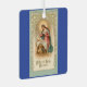 Beautiful, vintage picture of Blessed Mother covering Baby Jesus, is featured on the front of this ornament. With message, "A Peaceful Happy Christmas". The back of the ornament features, the Holy Family in the stable with angels, with message, "A Peaceful Christmas". A lovely decoration for your Christmas tree or give it as a gift!