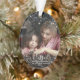 This beautiful Christmas ornament features your full frame photo with a festive frame of white sparkles or stars overlaid around the edges. The caption is written in elegant script and reads "blessed." There is space for your name, the year, or a short note at the bottom. Design is the same on both sides.