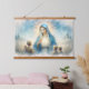 The polyester fabric displayed many wrinkles and several sharp creases throughout. At the bottom of the tapestry, I noticed a bulge in the fabric because it was not pulled tight enough before being connected to the wooden boards. It took me over an hour to spay water on the tapestry before putting it on an ironing board where I used a warm iron over a polyester cloth to remove the wrinkles and creases in the material. I was able to get out the wrinkles and creases that made that tapestry look as beautiful as its picture.