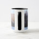 Designer Coffee mug with a landscape winter snow-scene. Trees sprinkled with icy snow. Text can be personalized with your own inspirational message, or a name for yourself or a beautiful custom and creative Christmas gift idea.