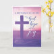 Wish someone a happy birthday with this elegant calligraphy style card, featuring the message, "A BIRTHDAY BLESSING: May the God of hope fill you with joy." Design includes cross silhouette background with elegant flourish accents. Inside can be customized to fit your needs but has this placeholder message: Inside Left: ""...Bless the Lord who crowns you with love and compassion." Psalm 103:4" RIGHT INSIDE PANEL: I pray God will remind you on your special day how much you are loved, appreciated, and cherished. HAPPY BIRTHDAY!