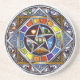 I'm not sure how much moisture these will soak up, haven't had a chance to try them out, but they look good and I like the cork backing. The printing is fine ~ and really looks cool with an artisan's hand made "Hurricane Martini" glass sitting on top of my painting (on the coaster) in my studio.