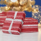 This Christmas wrapping paper features a decorative red and white design with the text: blessings, peace, love, joy. Personalize it with your name.