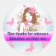 Young woman surrounded by pink flowers and butterflies with the message "Give thanks for unknown Blessings on their way" - a Native American proverb
