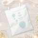 Préférez les sacs pour un baby shower avec une série de montgolfières bleues. Cet article montre bleu doux, montgolfières avec texte décontracté et aéré. Tous les mots peuvent être customisés.
