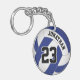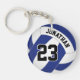 Ce porte - clé de volleyball pour garçons ou filles sert de sac à dos / étiquette duffel pendant la saison de volleyball, avec le nom du joueur et le numéro de maillot sur le devant et le nom du lycée ou de l'équipe et la mascotte sur le dos - les panneaux non blancs du volleyball peuvent être changés en couleur d'équipe du joueur, montré ici en bleu - par katz_d_zynes | rechercher équipe+esprit dans ma boutique pour des cadeaux d'esprit d'équipe de sport plus personnalisés